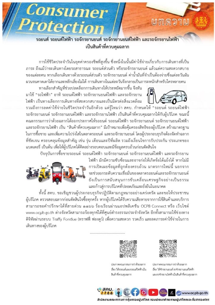 #ประชาสัมพันธ์ สำนักงานคณะกรรมการคุ้มครองผู้บริโภค แจ้งข่าว สคบ. ด้านการคุ้มครองผู้บริโภค จำนวน 5 เรื่อง บทความ จำนวน 4 เรื่อง และอินโฟกราฟิก จำนวน 1 เรื่อง ได้แก่