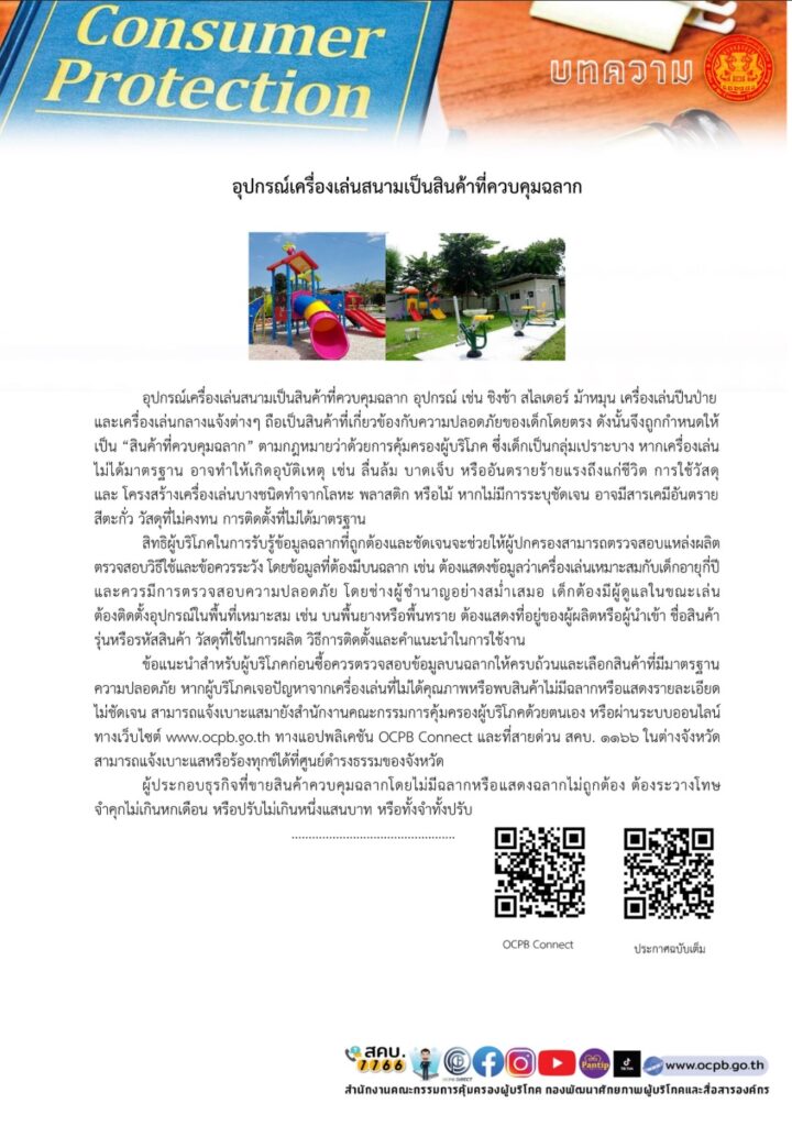 1. อุปกรณ์เครื่องเล่นสนามเป็นสินค้าที่ควบคุมฉลาก