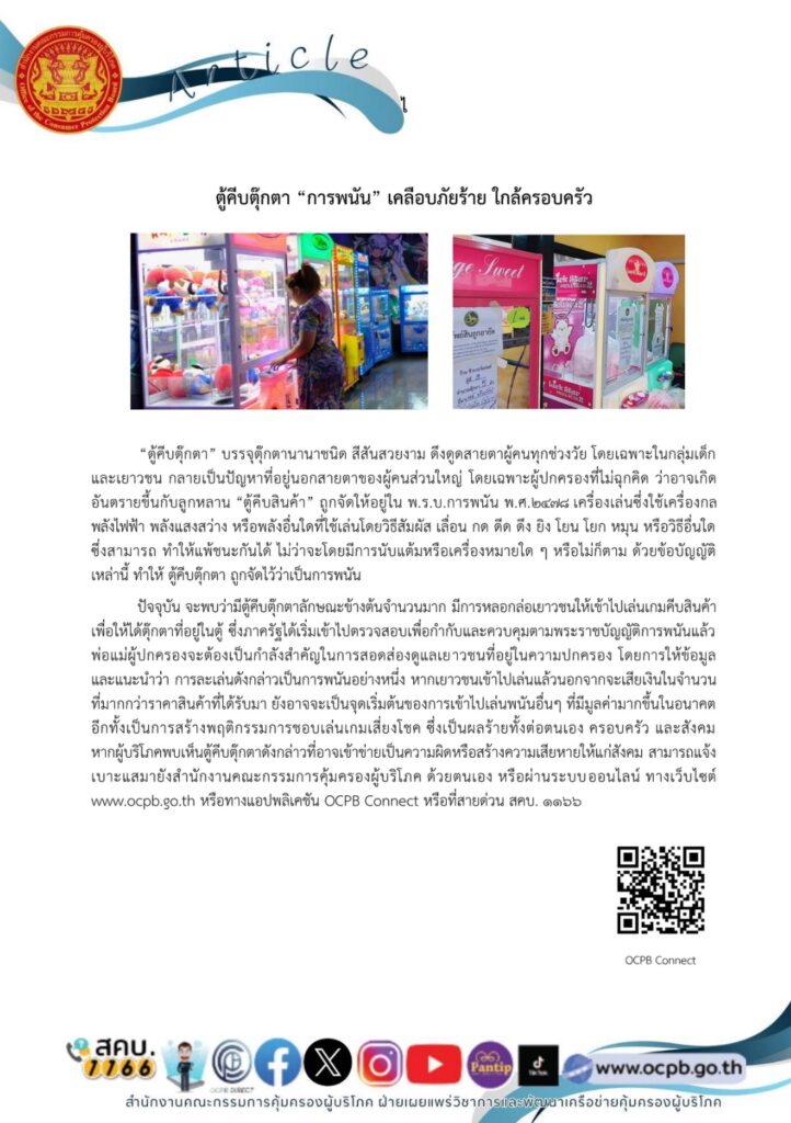 2. ตู้คีบตุ๊กตา “การพนัน” เคลือบภัยร้ายใกล้ครอบครัว